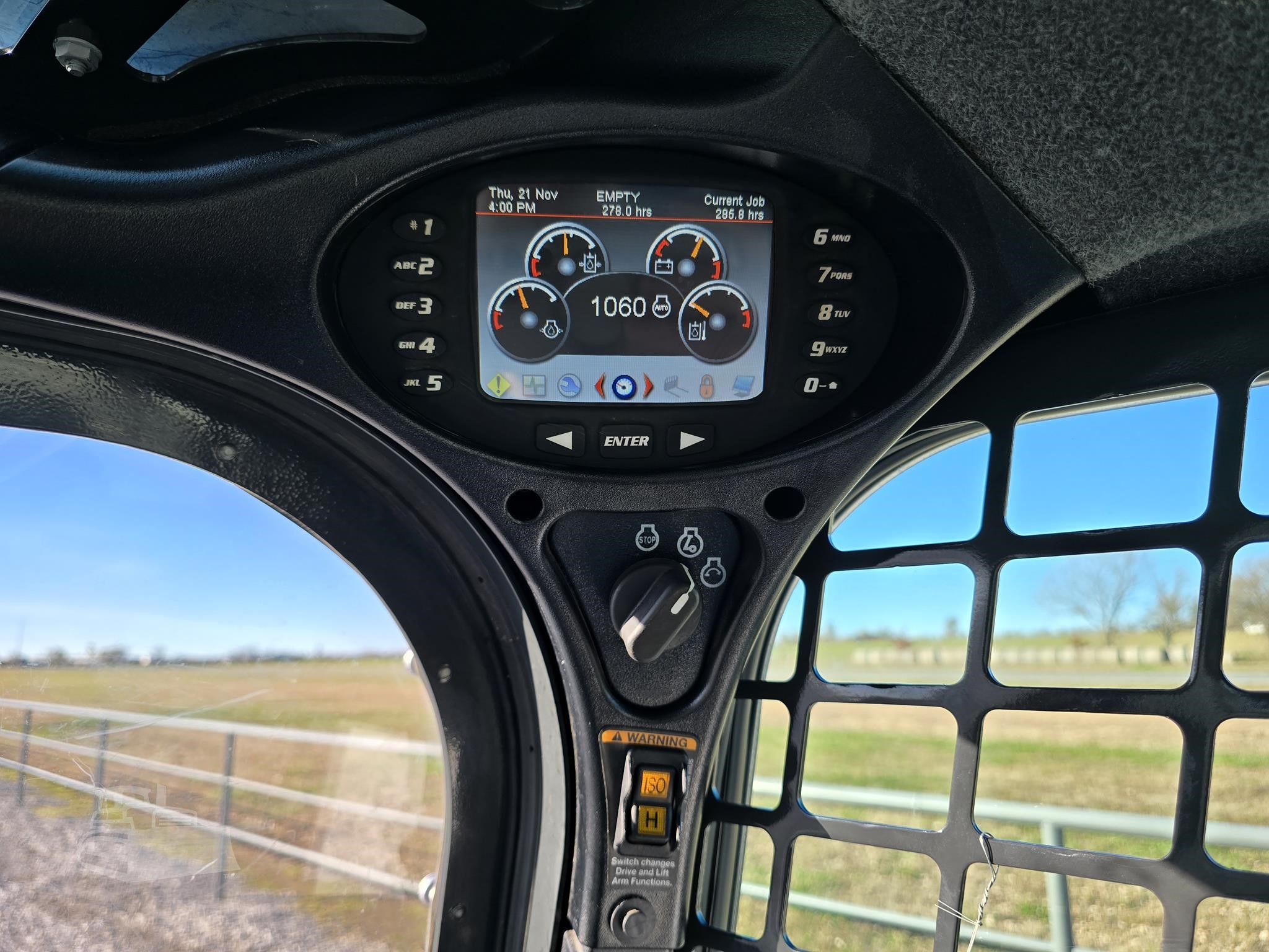 The enclosed cab is equipped with heat, air conditioning, and an integrated radio, providing a comfortable all-season working environment. Selectable joystick controls allow operators to choose their preferred control pattern for precision handling and reduced fatigue.